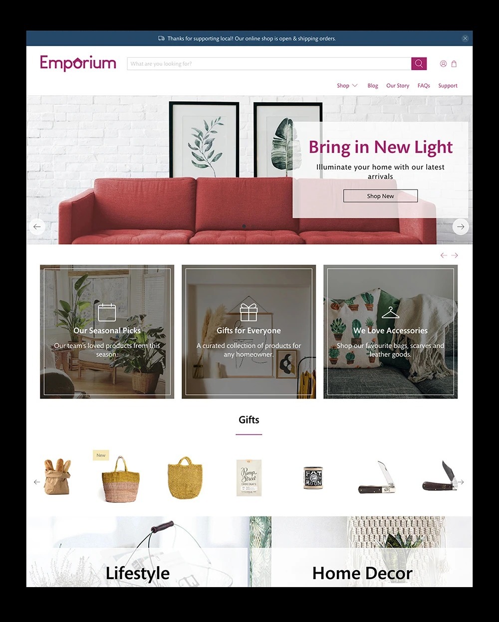With 13 pre-designed demo stores to choose from and a library of placeholder content to serve as inspiration or fill in the gaps of your original content, Flex makes getting a beautiful store up and running a breeze.